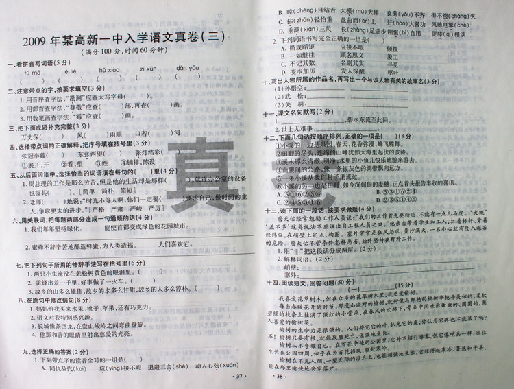 西安奥数网9月3日 小升初做真卷是一个必要的过程。充分了解目标校的命题趋势,才能更有把握。小编将2009年铁一中的真题进行了整理。2009年铁一中小升初入学考试语文真卷共三套。本套为第一套。如果有任何疑问,都可以留言给我们,或进入e度论坛-小升初版块咨....
