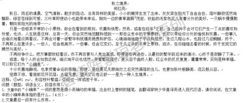 阅读题要答好还是要回到阅读上,为了帮助孩子提高阅读水平,小编会每天选择一篇篇幅短的小文章来让孩子阅读。今天小编选取《秋之境界》来做相关练习题。【点击下页答案解析】【答案解析】相关链接:西安小升初语文阅读真题天天练汇总......