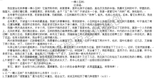阅读题要答好还是要回到阅读上,为了帮助孩子提高阅读水平,小编会每天选择一篇篇幅短的小文章来让孩子阅读。今天小编选取《一颗小玉树》来做相关练习题。【点击下页答案解析】【答案解析】相关链接:西安小升初语文阅读真题天天练汇总......