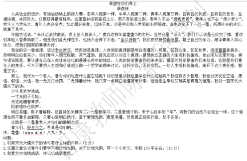 阅读题要答好还是要回到阅读上,为了帮助孩子提高阅读水平,小编会每天选择一篇篇幅短的小文章来让孩子阅读。今天小编选取季羡林的《希望在你们身上》来做相关练习题。【点击下页答案解析】【答案解析】相关链接:西安小升初语文阅读真题天天练汇总......