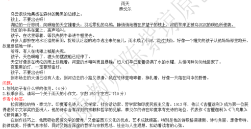阅读题要答好还是要回到阅读上,为了帮助孩子提高阅读水平,小编会每天选择一篇篇幅短的小文章来让孩子阅读。今天小编选取泰戈尔的《雨天》来做相关练习题。【点击下页答案解析】【答案解析】相关链接:西安小升初语文阅读真题天天练汇总......