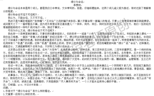 阅读题要答好还是要回到阅读上,为了帮助孩子提高阅读水平,小编会每天选择一篇篇幅短的小文章来让孩子阅读。今天小编选取《缘分与命运》来做相关练习题。【点击下页答案解析】【答案解析】相关链接:西安小升初语文阅读真题天天练汇总......