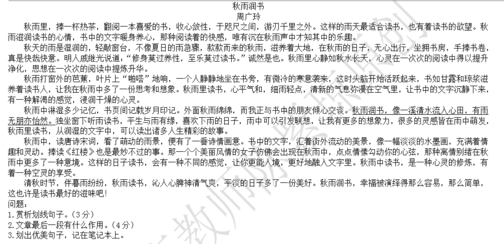 阅读题要答好还是要回到阅读上,为了帮助孩子提高阅读水平,小编会每天选择一篇篇幅短的小文章来让孩子阅读。今天小编选取的《秋雨润书》来做相关练习题。【点击下页答案解析】【答案解析】相关链接:西安小升初语文阅读真题天天练汇总......