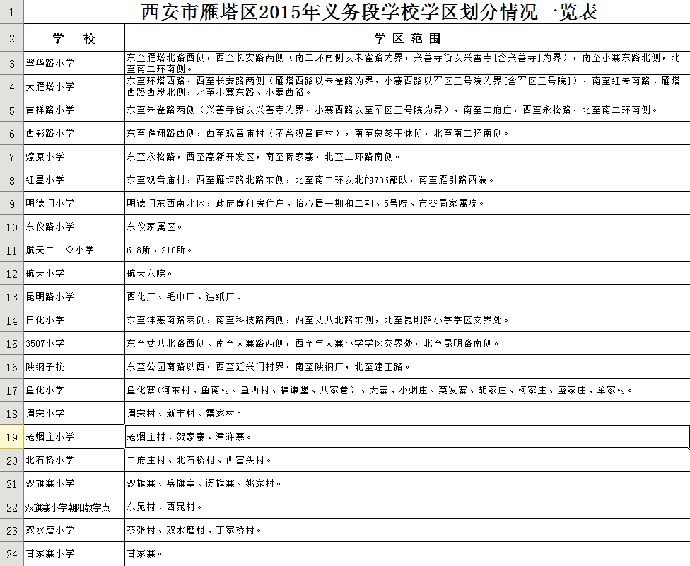 2019年西安学区划分出来了,来看看你在哪个学区吧。