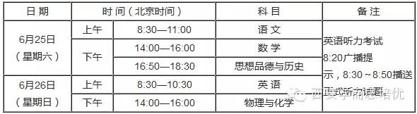 2019年,全省统一组织的初中毕业学业考试科目为语文、数学、英语、物理、化学、思想品德和历史,共7科5卷。各科目试卷满分值及考试时间分别为:语文120分,时间为150分钟;数学120分,时间为120分钟;英语120分(其中听力25分),时间为120分钟;物理与化学合卷...