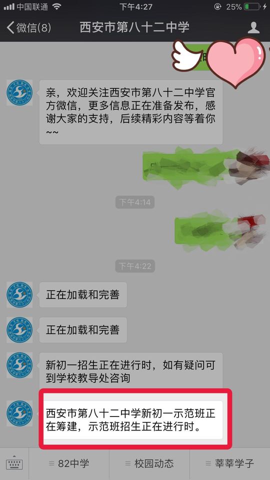 西安市第八十二中学的公众号,发现她们今年新初一开始筹建示范班了,示范班招生正在进行时,对口的家长可以打电话咨询一下!